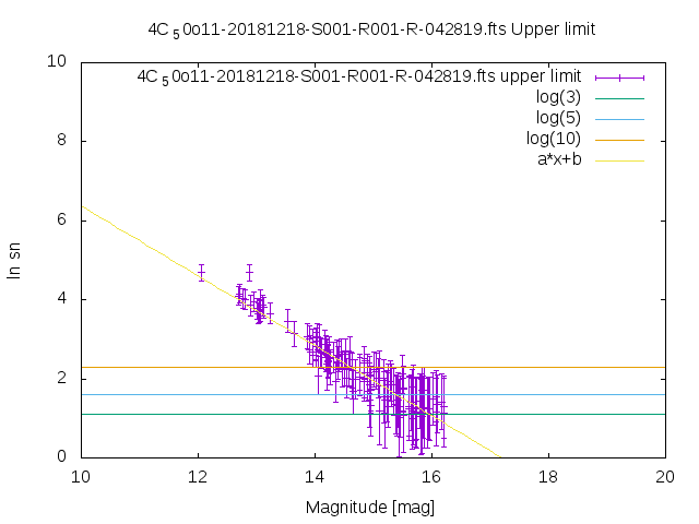 | upper limit SN vs magnitude graph from USNO-B1 catalog |