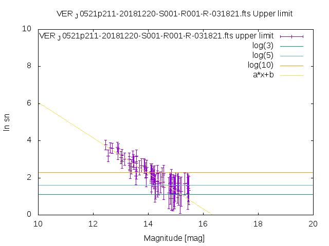 | upper limit SN vs magnitude graph from USNO-B1 catalog |