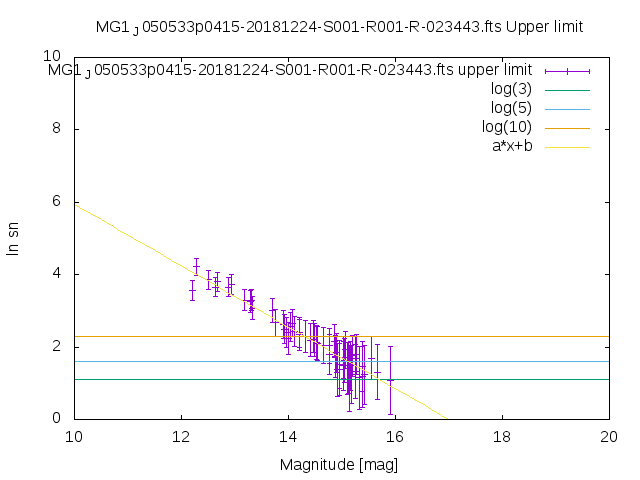 | upper limit SN vs magnitude graph from USNO-B1 catalog |