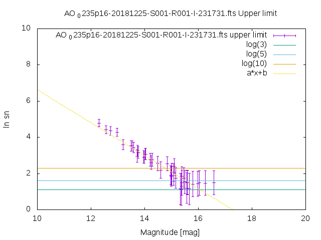 | upper limit SN vs magnitude graph from USNO-B1 catalog |