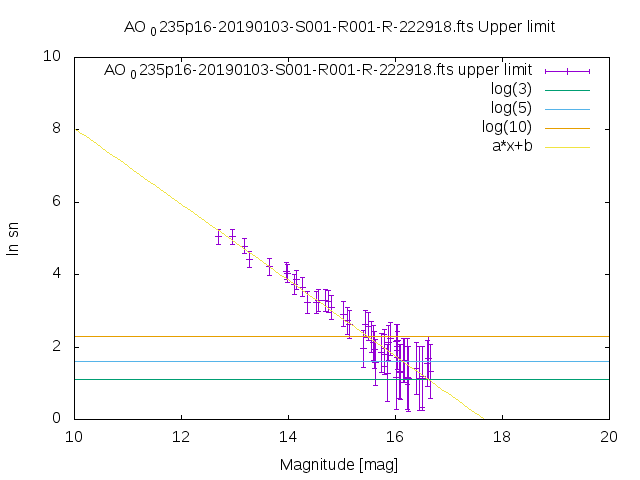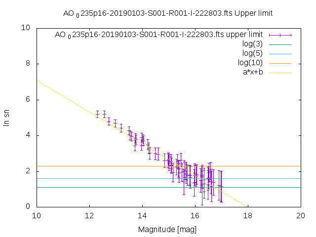 | upper limit SN vs magnitude graph from USNO-B1 catalog |