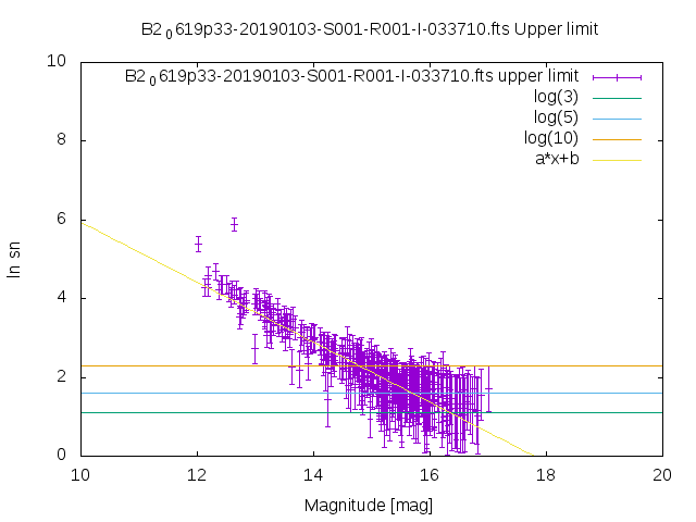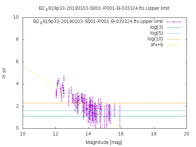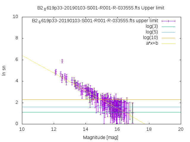| upper limit SN vs magnitude graph from USNO-B1 catalog |