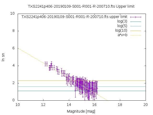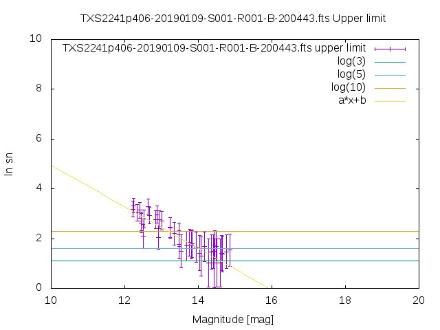 | upper limit SN vs magnitude graph from USNO-B1 catalog |