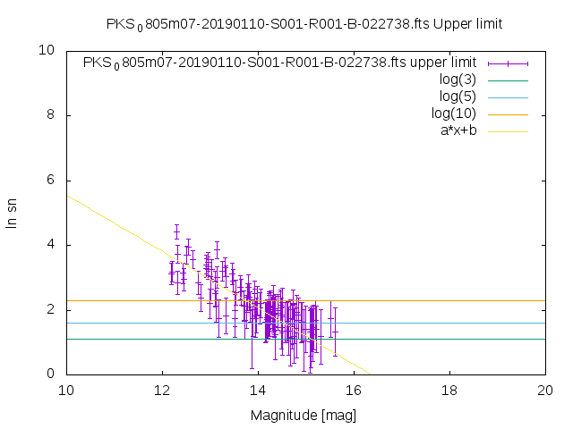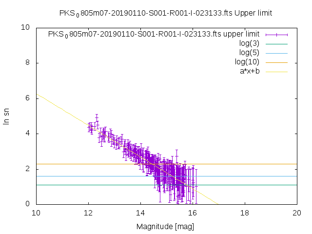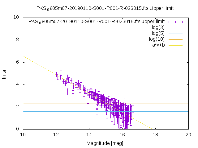 | upper limit SN vs magnitude graph from USNO-B1 catalog |