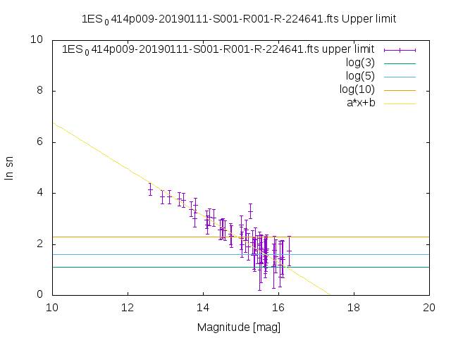 | upper limit SN vs magnitude graph from USNO-B1 catalog |
