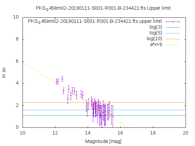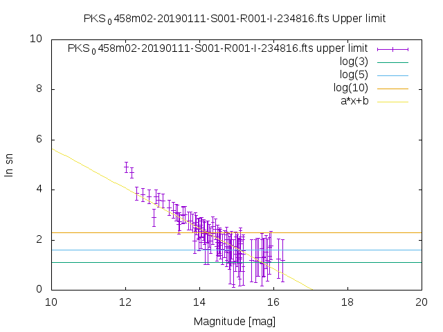 | upper limit SN vs magnitude graph from USNO-B1 catalog |