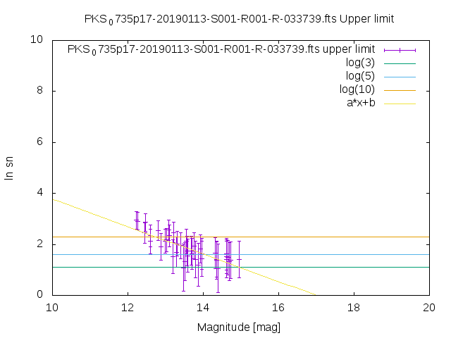 | upper limit SN vs magnitude graph from USNO-B1 catalog |